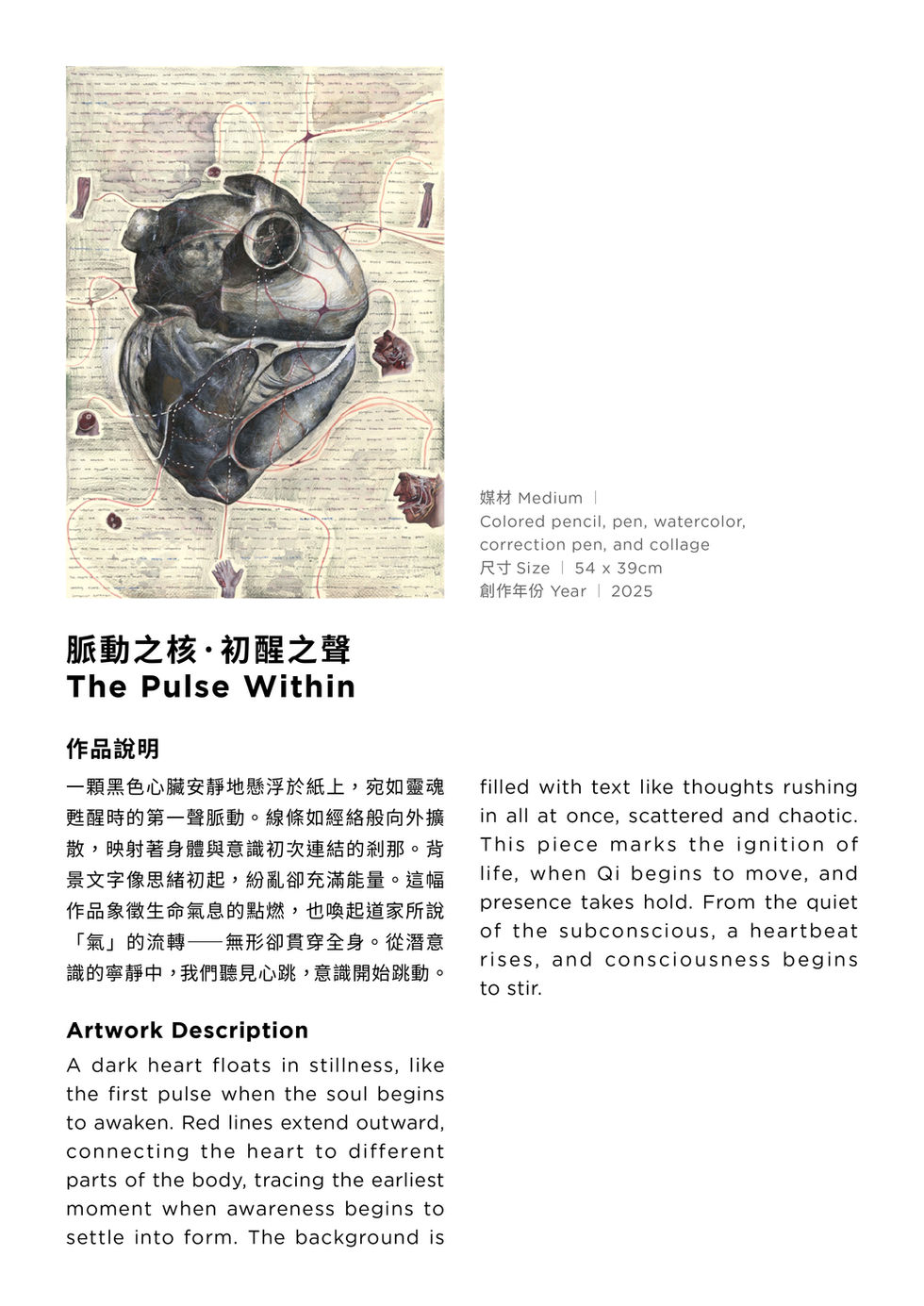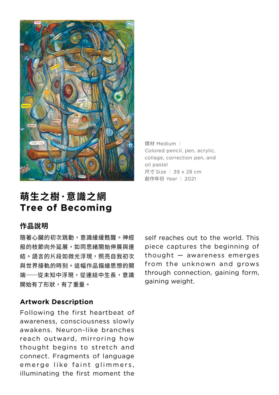 The Flow of Consciousness is an art exhibition by To the Moon Art Charity’s founder, Valerie Yen, created in collaboration with community long-term care institutions and nonprofit organizations as part of World Alzheimer’s Month. This mixed-media series is an artistic journey where neuroscience meets Taoist philosophy, tracing the life of consciousness—from its quiet beginnings beneath the surface, through awakening, connection, cultural memory, pursuit, and fragmentation, to its eventual return to stillness.